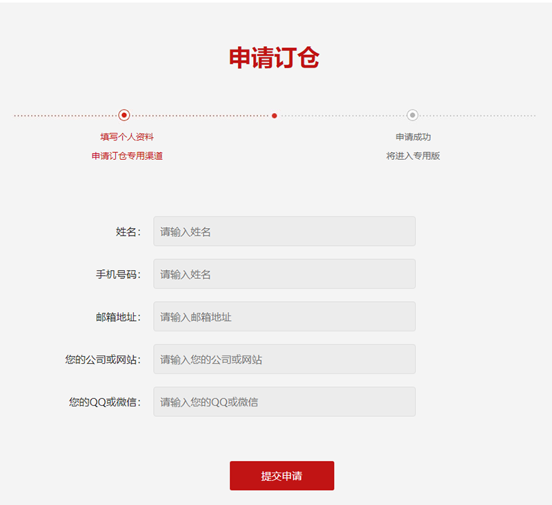 一般包括姓名、手機號碼、郵箱地址、你的公司或者網站名、聯系QQ或微信,填寫完畢就提交申請~是不是很簡單呢?