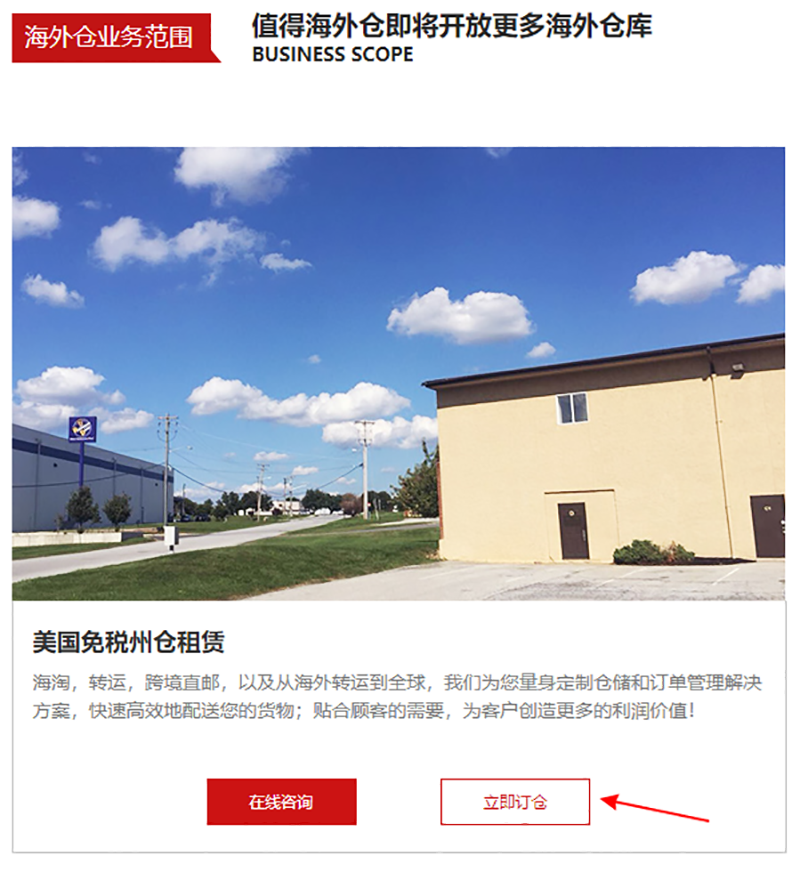 我們進入官網可以看到,他們有租賃美國倉業務的,右上角有咨詢在線客服,在預定美國電商倉庫有任何不懂的都可以問他們,當讓也可以在租賃美國倉的頁面咨詢也是一樣的。他們的客服一直都很專業,有著豐富的倉庫租賃經驗,絕對能給你滿意的回答。